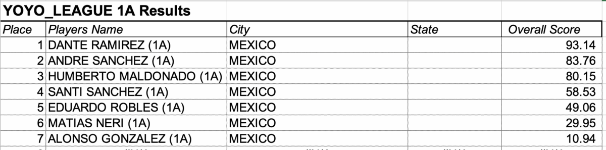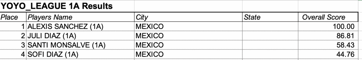 RESULTADOS DE LA JUNIOR YOYO LEAGUE OCT 2025